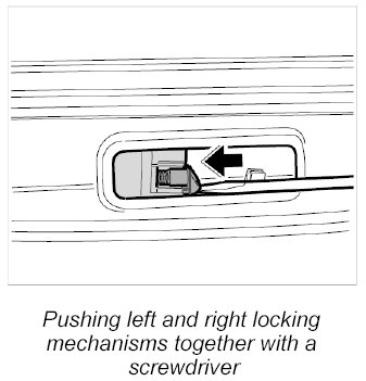 4. Push the two locking mechanisms for the auxiliary brake light (center) together with a screwdriver and pull the brake light out of the rear center panel.
