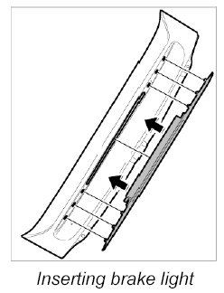 2. Insert brake light into the center of the opening in the rear spoiler and press into place -C-.