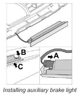 1. Position the auxiliary brake light in the rear center panel and carefully clip it into the rear center panel, starting from the center out.