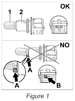If the bulb is seated correctly on the bulb socket and the electric contacts are not bent ( -top- ) - Continue with Step 1.3 and reinstall the side direction indicator/position light.