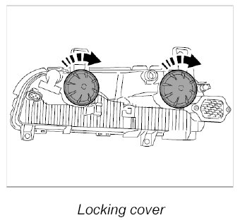 3. Position cover on the back of the auxiliary headlight and lock it. Turn in the correct direction (see marking on cover).