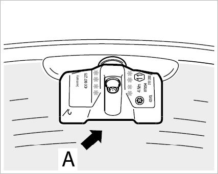 3. Push wheel electronics -A- slightly into the rim well (this adjusts the angle of inclination of valve to wheel electronics).