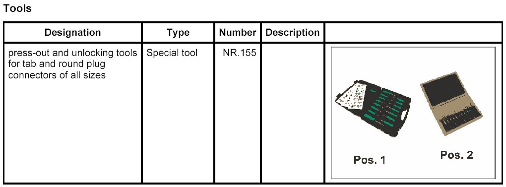 1. Open the secondary locking mechanism using the press-out and unlocking tools for tab and round plug connectors of all sizes NR.155. Insert the tool in the opening provided and lift the locking mechanism. The locking mechanism engages in the upper position.