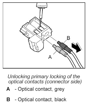 Grey contacts are used in the wiring harness "]]" control unit junction (optical input).