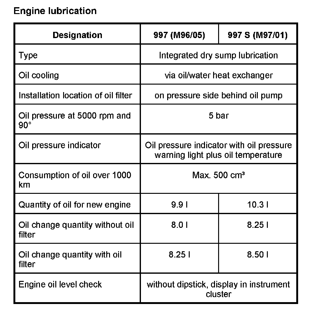 Technical data, lubrication system