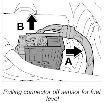 4.1. Release connector completely on fuel level sensor -arrow A- and pull it off -arrow B-.