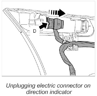 2. Release and unplug electric connector on the side direction indicator -D-.