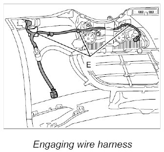 3. Disengage wire harness at the auxiliary headlight and at the front apron -E-.