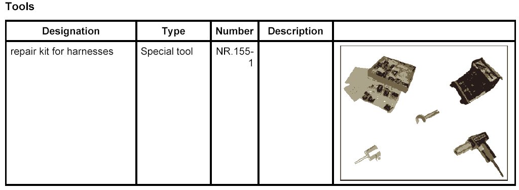 - The procedure for stripping insulation from, crimping, and shrinking/insulating the electric lines must be complied with and observed. The procedures are described in detail in the repair kit for harnesses NR.155-1.