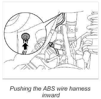 5. Push the ABS wire harness inward -arrow-.