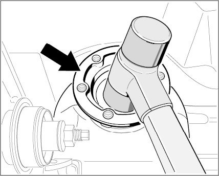 3. Drive halfshaft flange into transmission using a rubber hammer.