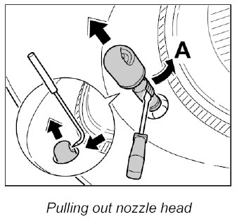 2. Hold the nozzle head at the top and disengage the catch on the spray nozzle with a small screwdriver -A-. The nozzle head is released from the spray nozzle and the spray nozzle moves back into place.
