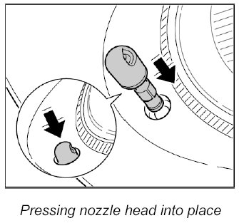 1. Insert the nozzle head into the opening on the spray nozzle and slide it in as far as it will go. The nozzle head clicks into place in the spray nozzle.
