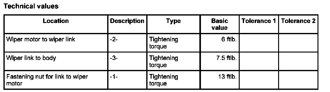 4. Screw down the fastening screw -3- for the wiper link. - Tightening torque: 7.5 ft-lb.