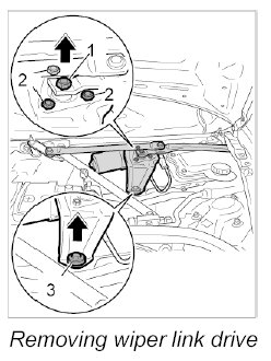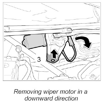 3. Carefully raise the wiper link and remove the wiper motor downwards.