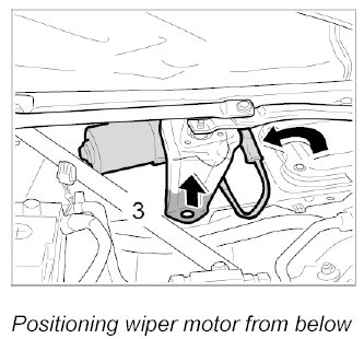 1. Carefully raise the wiper link and position the wiper motor from below.