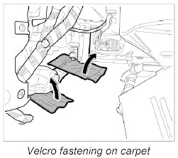 3. Draw the carpeting beneath the centre console together and secure with the velcro fastener.