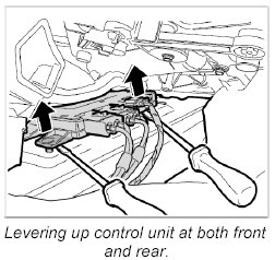 3. Push a screwdriver under the control unit and lever it up at the front and rear.