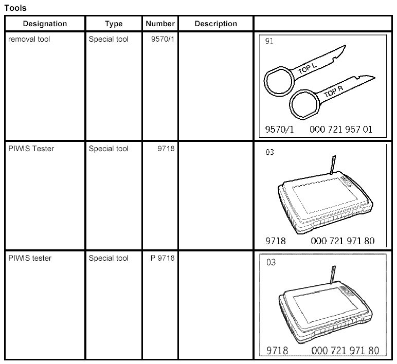 - The PIWIS Tester 9718 instructions take precedence since the description may be different. This may be due to more recent software versions.