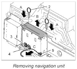 2. Unlock the electric connectors on the navigation unit and pull out the navigation unit.