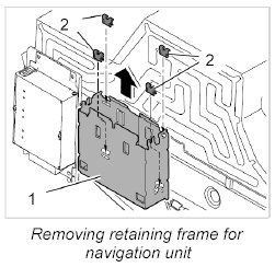 INFORMATION: If the navigation unit is removed with the retaining bracket, then new clips must be used before reinstallation.