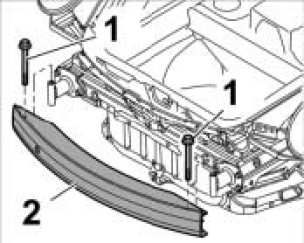 1. Unscrew fastening screws -1- and remove bumper -2-.