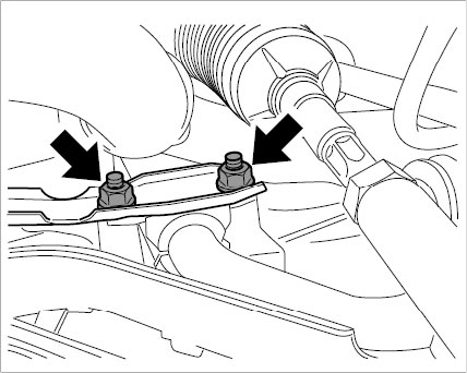 3. Loosen anti-roll-bar mount -arrows- and allow anti-roll bar to hang.