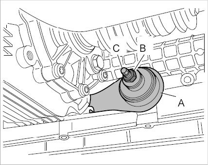 8. Loosen fastening nuts -B- for front bracket -A- and unscrew the studs -C-.