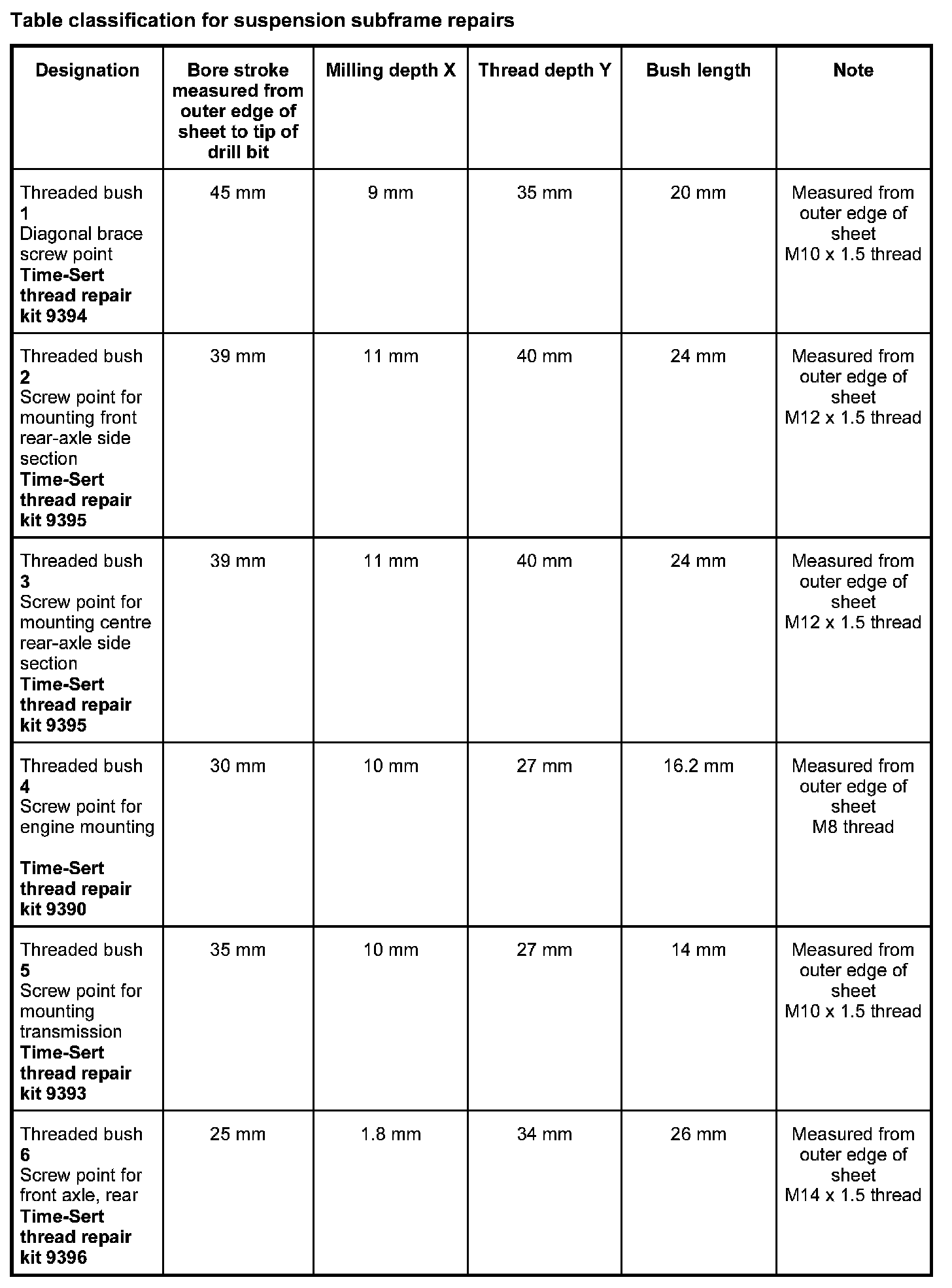 - Thread repairs can only be carried out using the Time-Sert thread repair system.