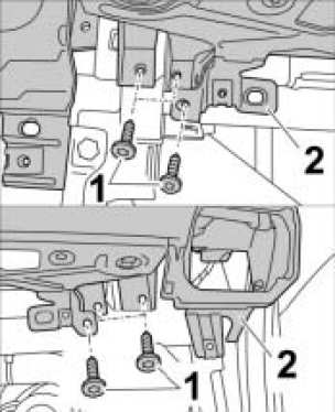 1. Unscrew fastening screws -1- on the instrument panel -2- at the front passenger side.