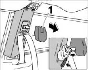 1. Lift up coat hook bracket -1- from below with a plastic spatula -arrow- and carefully pull up and off.