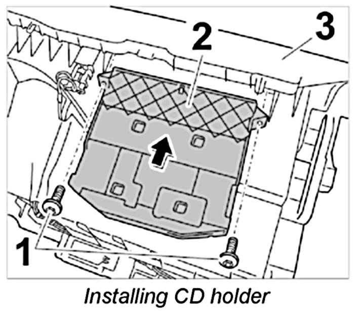 1. Position CD holder -2- at glove compartment -3- and secure using the fastening screws -1-.