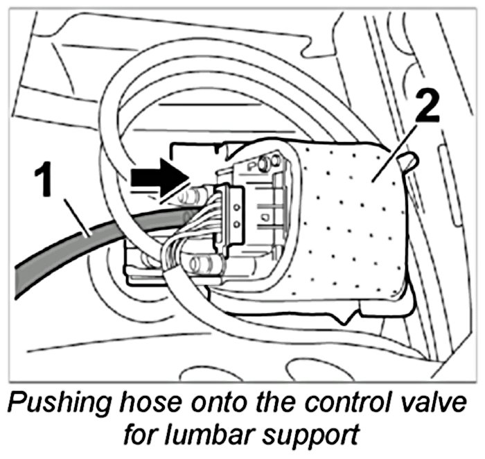 4. Push the white hose -1- onto the control valve for lumbar support -2-.