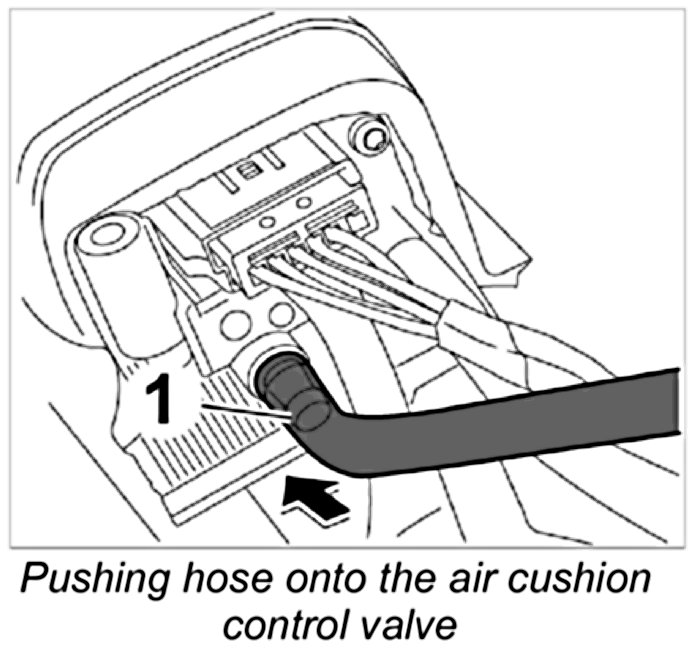 1. Push hose -1- onto the air cushion control valve.