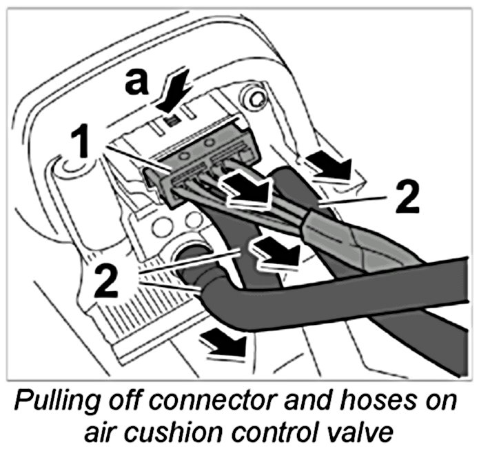 4. Pull off the three hoses -2- from the air cushion control valve.