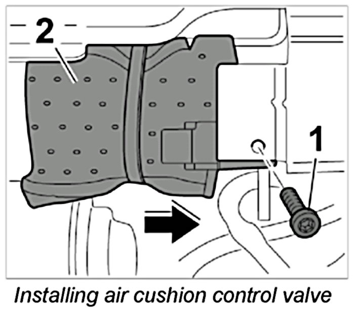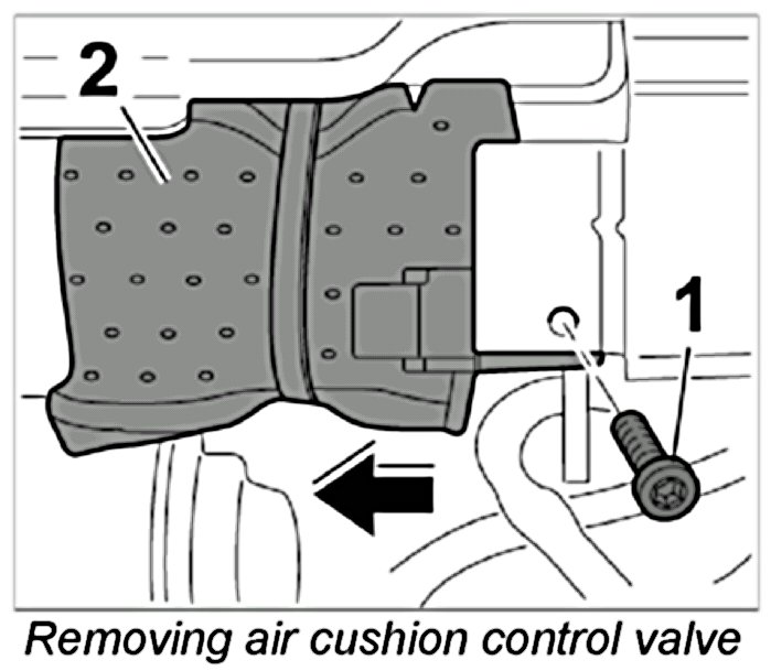 5. Unscrew fastening screw -1- and remove air cushion control valve -2-.