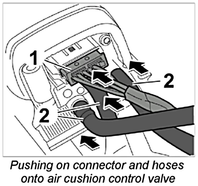 2. Push on the three hoses -2- onto the air cushion control valve.