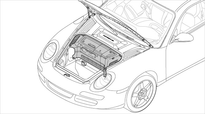 1. Remove cover over hydraulic unit (front luggage compartment cover).