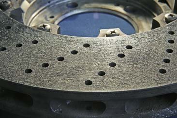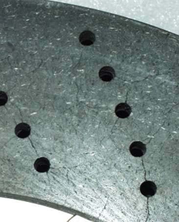 Due to the composition of different materials in the friction layer and support body, the friction surfaces (even when new) are coated with an uncritical crack pattern (stress-relief microstructure). Individual relaxation cracks sometimes run along the perforated bores.