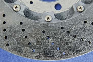 The friction surface changes occur due to material fatigue as a result of extremely high thermal load. These disc temperatures, which occur above all in racing conditions, cause a progressive material fatigue.