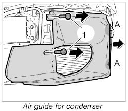 2. Pull the air guide forward and disengage it at the condenser -A-