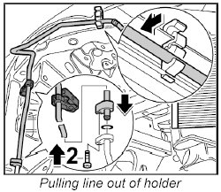2. Unclip holder for line and remove the line.