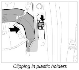 13. Clip in the plastic holders for the electric main wire harness to the dashboard bracket.