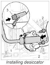 Installing desiccator (fluid tank)