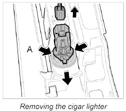 2. Press together the locks -A- and push out the cigar lighter out of the centre console.
