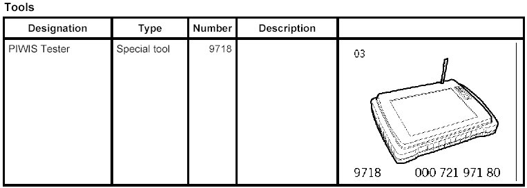 - The PIWIS Tester 9718 instructions take precedence since the description may be different. This may be due to more recent software versions.