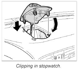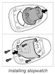 4. Run electrical lead into the dashboard, position the stopwatch with its cover over the dashboard and clip in the four clips.
