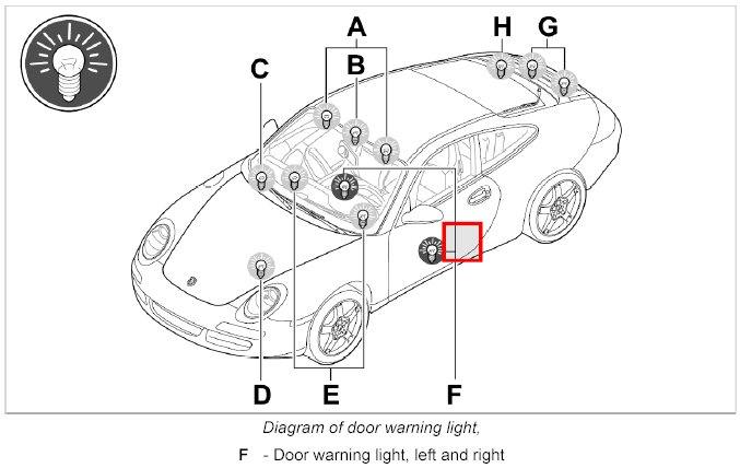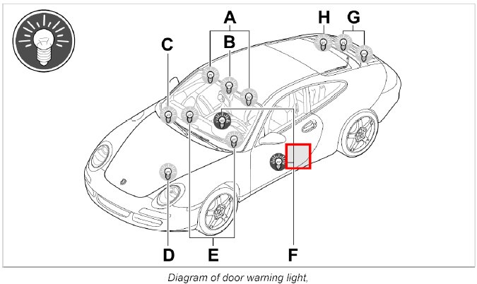 1. Remove bulb socket from the door warning light and remove defective bulb.