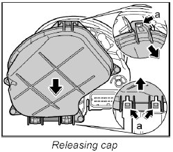 2. Release cap once at the top and twice at the bottom -a- and remove from the main headlight.