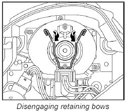 2. Disengage both retaining bows and pull out lamp.